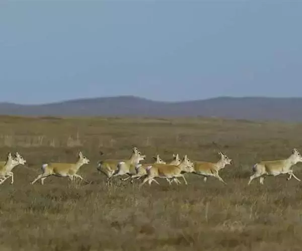 普氏原羚(学名:Procapra przewalskii)别名滩原羚、黄羊,1875年由俄罗斯博物学家普热瓦尔斯基(Przewalski)在中国内蒙古鄂尔多斯草原上发现并命名。普氏原羚全身黄褐色,臀斑白色。仅雄性有角,双角角尖相向钩曲。栖息于山间平盆地和湖周半荒漠地带,以数头或数十头为群,冬季往往结成大群。以莎草科、禾本科及其他沙生植物为食。曾经广泛分布于内蒙古、宁夏、甘肃及青海。由于人类活动影响及栖息地恶化,该物种的数量下降,分布区范围锐减,而现在普氏原羚只分布于中国青海省,包括青海湖周围,以及天峻县和共和县。