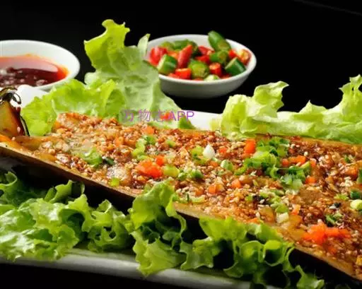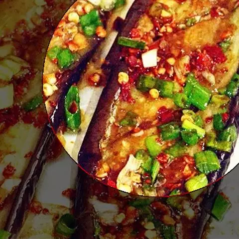 这是一道以茄子、剁椒、大蒜、孜然粉为主要食材进行烤制而成的一道菜品。