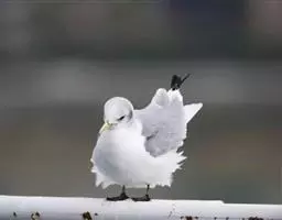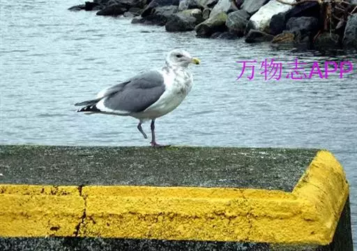 灰翅鸥(学名:Larus glaucescens),夏羽头、颈、腰、尾白色;肩、背和翅上覆羽鸽灰色。冬羽和夏羽相似,但头和颈具淡褐色纵纹,有时扩展至上胸。嘴黄色,下嘴先端具红斑;幼鸟嘴黑色。脚粉红色。栖息于海岸:悬岩,海滨沙滩于近海海岛上。常成对或成小群活动。主要食鱼、虾、甲壳类、软体动物等水生脊椎和无脊椎动物。通常营巢于人迹罕至和难于到达的海岸悬岩上,也营巢于平坦的海滨沙滩。巢主要由水生植物和枯草构成,内垫有羽毛。
