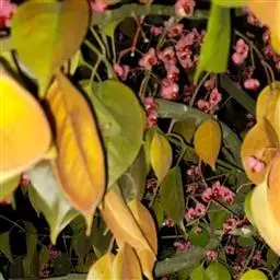 常绿灌木或小乔木,高达8米。 叶光亮革质,倒卵形或窄长椭圆形,长3-6厘米,宽2-3厘米。 聚伞花…