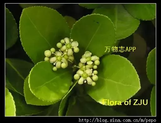 冬青卫矛,是卫矛科卫矛属灌木植物,聚伞花序,花白绿色,花萼裂片半圆形,花瓣近卵圆形,…