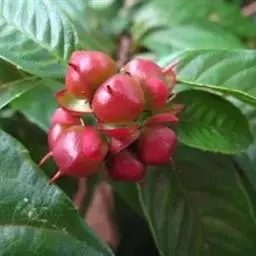 常绿灌木,高1~2.5m,目前最高可达5m,冠幅0.5~1m,最大胸径约5.8cm。阴生或半阴生, “植物界大熊猫”在京亮相 1年可以抽梢3~4次,株型紧凑,分枝密,嫩枝无毛,略显红色,老枝光滑,灰褐色。叶倒卵形、长倒卵形及倒心状披针形,先端园钝或者稍微有凹陷,基部楔形;叶上表面光亮碧绿,下表面浅绿色,两面均无毛,稍被灰粉;侧脉5~8对,干时两面稍可见,中脉两面突起;叶全缘,有时见叶尖端有2~5对锯齿,边缘具透明骨质状狭边,呈互生或轮生,多聚集于枝梢上部;叶柄长0.6~1.2cm,无毛。抽芽时可见先出叶多枚(7~8枚),第一片真叶至顶叶叶间距逐渐变短,枝顶往下基本一腋一花,每梢生1~8个花芽,花艳红色或粉色,无花梗;花在枝上自下而上渐次开放,整个植株形成连续开花的现象。花瓣5~9枚,柱头2~5裂,雄蕊外轮连成桶装。鳞片7~11枚,子房卵形无毛,果为蒴果,呈卵球形、纺锤形或圆锥形,2~4室,每室2粒种子,成熟时果皮由青色变成褐黑色或棕色,果实裂开。