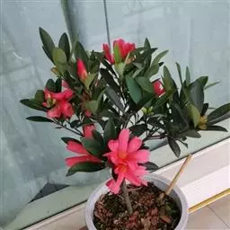 杜鹃红山茶的株型与叶形特点也决定了杜鹃红山茶在园景树、花篱、盆景及切花等方面均有较好的开发前景。