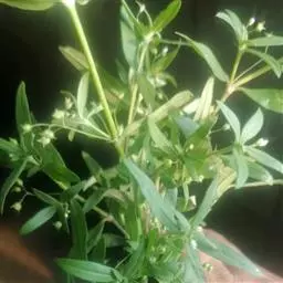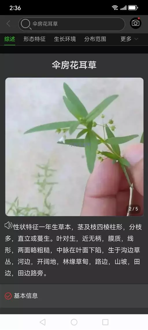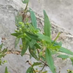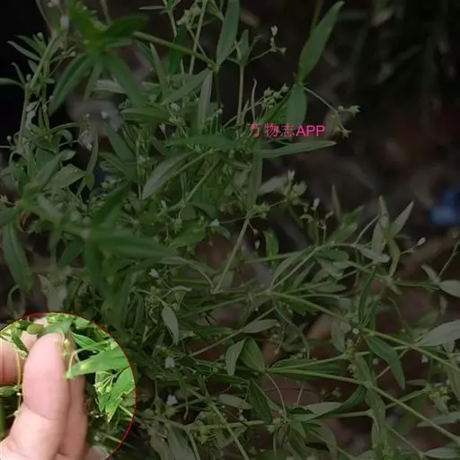 性状特征一年生草本,茎及枝四棱柱形,分枝多,直立或蔓生。叶对生,近无柄,膜质,线形,两面略粗糙,中脉在叶面下陷,生于沟边草丛,河边,开阔地,林缘草甸,路边,山坡,田边,田边路旁。