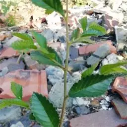 底部接:以培育灌木形金叶榆为目的,适用于以1~2年生白榆苗做砧木的嫁接,方法同上,一般一株砧木只插一根接穗,嫁接后绑好。