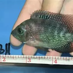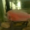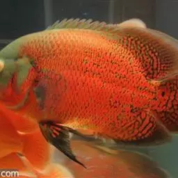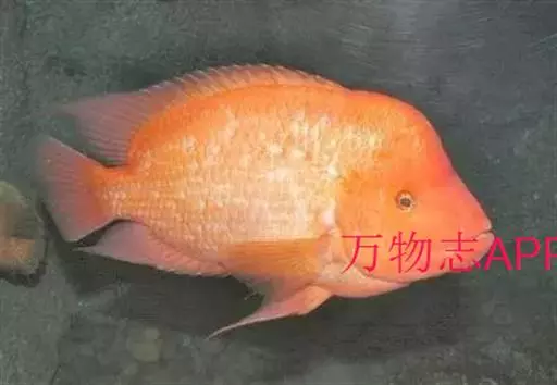 大型慈鲷,体格强健,厚侧扁形,约25厘米,大者可长达30厘米,全身橘红或鲜红,雄性额头半球状突起,高于颅顶,为全身制高点,雌鱼额头仅稍稍隆起。雄鱼背鳍和臀鳍的后缘鳍条延长。血鹦鹉鱼的父本,金刚鹦鹉鱼的母本。捕食性鱼类。