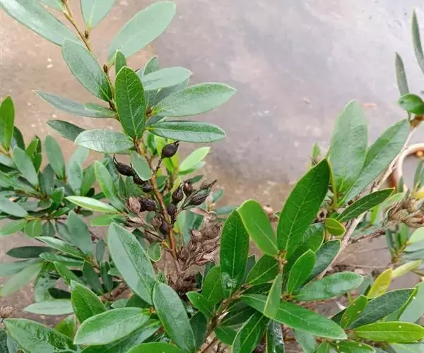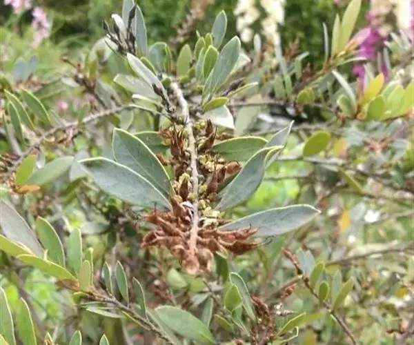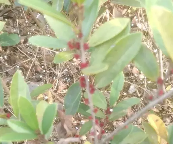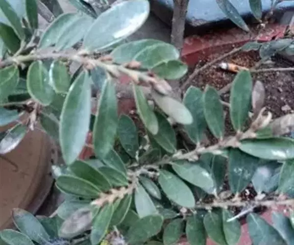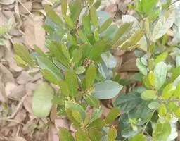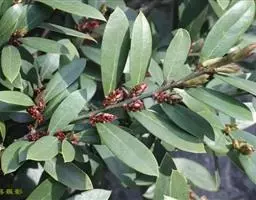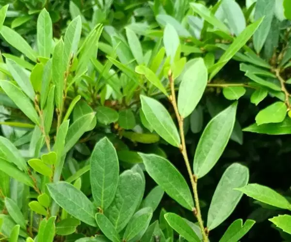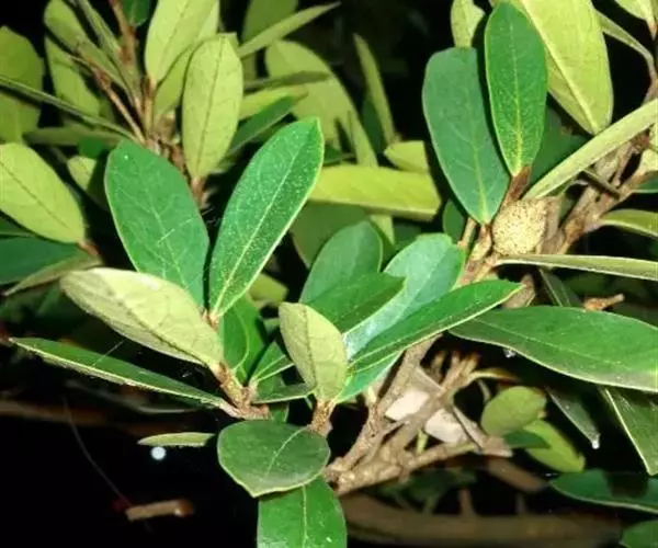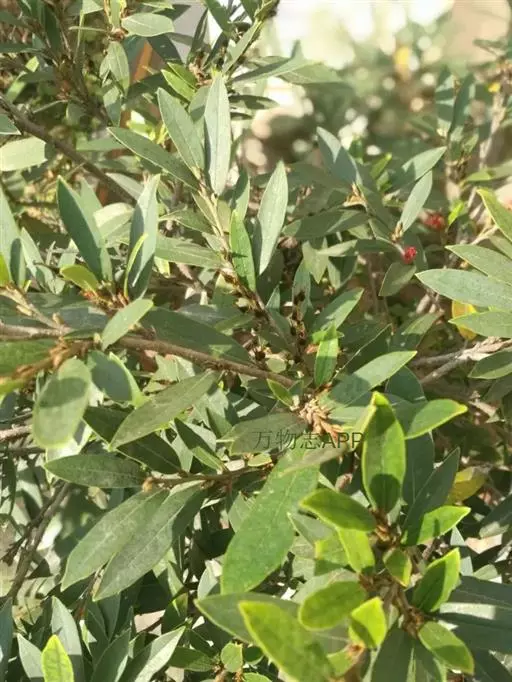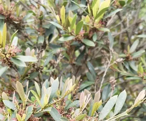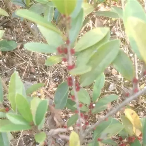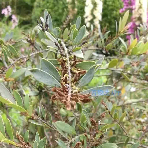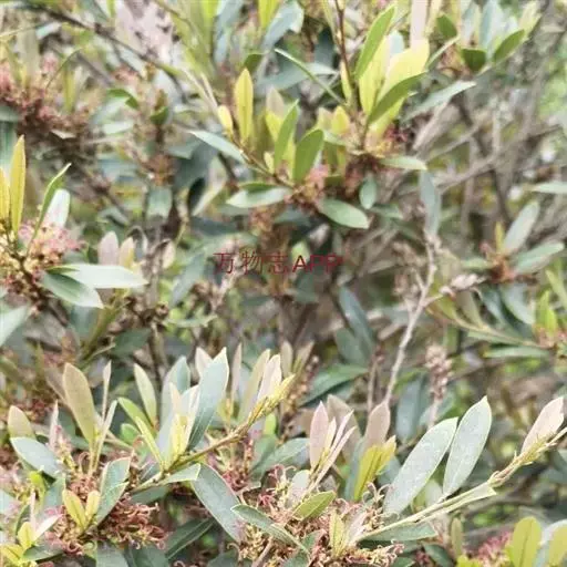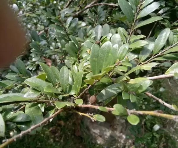 常绿灌木高1-2米;嫩枝秃净或略有柔毛,纤细,节间长1-2.5厘米;老枝无毛,有皮孔,干后灰褐色;芽体有褐色柔毛。叶薄革质,倒披针形或矩圆状倒披针形,长3-5厘米,宽1-1.5厘米,先端锐尖,基部狭窄下延;上面绿色,干后暗晦无光泽,下面秃净无毛,干后稍带褐色;侧脉4-6对,在上面不明显,在下面略突起,网脉在两面均不显著;边缘无锯齿,仅在最尖端有由中肋突出的小尖突;叶柄极短,长不到1毫米,无毛;托叶短小,早落。