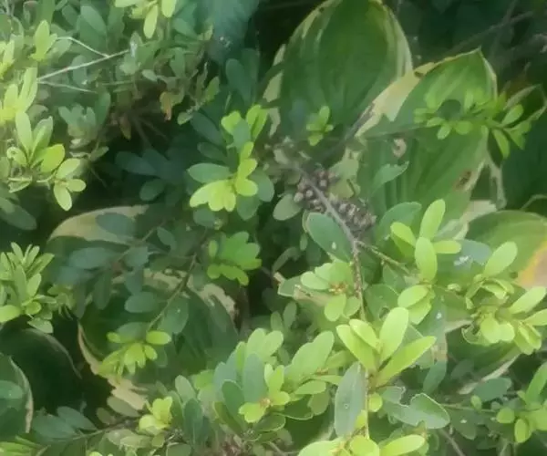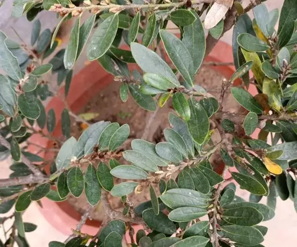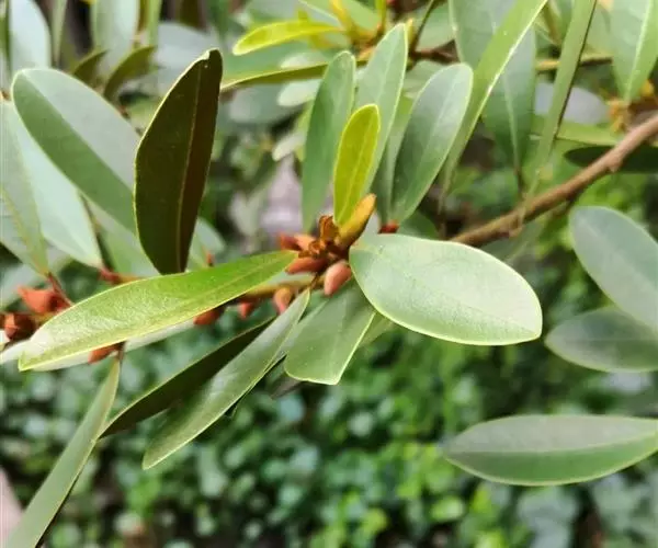 小叶蚊母树(学名:Distylium buxifolium (Hance) Merr.)是金缕梅科蚊母树属植物。常绿灌木高1-2米;嫩枝秃净或略有柔毛,纤细,节间长1-2.5厘米;老枝无毛;芽体有褐色柔毛。叶薄革质,倒披针形或矩圆状倒披针形。雌花或两性花的穗状花序腋生,长1-3厘米,花序轴有毛。蒴果卵圆形,先端尖锐,宿存花柱长1-2毫米。种子褐色,长4-5毫米,发亮。