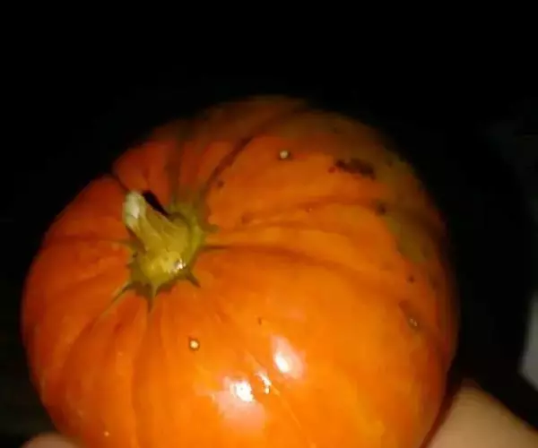 表皮橙黄色,扁圆形,表面有纵向棱沟,外形美观,单瓜重100克左右,连续结瓜性好。