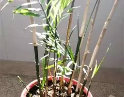 茎假鳞茎状,密集或丛生,多少两侧压扁状,纺锤形或卵状长圆形,通常2~5节,长1~5厘米,粗5~15毫米,顶生1枚叶,基部收狭,干后淡黄褐色,具光泽;节间长1~2厘米,被白色膜质鞘。
