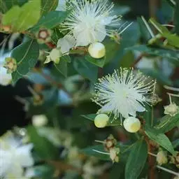 香桃木是桃金娘科香桃木属植物。枝四棱,幼嫩部分稍被腺毛;叶芳香,革质,叶片卵形至披针形;花芳香,…