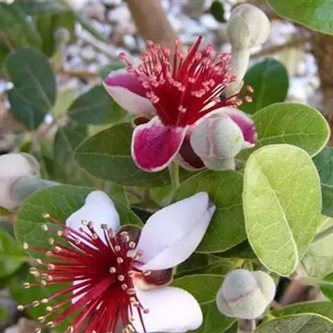 草莓番石榴是番石榴属植物,株高可达2米,树皮平滑,叶对生,倒卵形或椭圆形,先端钝,全缘,厚革质,…