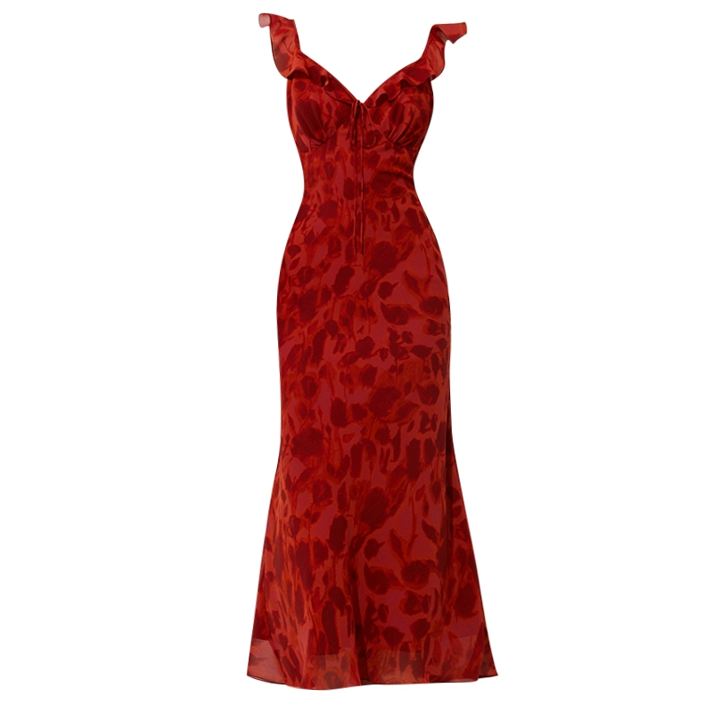 端庄优雅的长裙用鲜艳的花卉图案面料:穿着吊带长裙可以让成熟女性收敛露肩而造成的活泼,动态之美,使自己仪态端庄又不失优雅,但是长裙的风格与露肩式背道而驰,因此色彩的运用必须极具变化,鲜艳的花卉图案成为首选.如银底红花,缎质布料可塑优雅美人,粗犷大花可展示独特风格,绿色图案好像使人融入了大自然。
