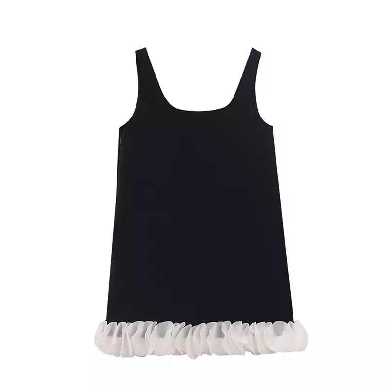 吊带连衣裙,和背带裙不同,背带一般者较宽长,并在背后打衩,而吊带裙较窄短。吊带裙一般在腰节以上部位都有一段护胸和护背的衣料。在盛夏季节穿着凉快、舒适,除了女童以外,成人也穿着,现代比较流行。