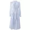 该衣穿着时,里衽掩入左侧腋下,外衽折到右侧身旁,底摆呈喇叭状。双手平放,大的袖胡呈弧形下垂,衣纹显示出当今蝙蝠袖的外观。到中世纪以前.西方大多数裙子属于连衣裙,到了16世纪以后,上衣和裙子就逐渐分离开了。第一次世界大战之后,妇女服的主流仍然是连衣裙。连衣裙的种类也就变得多种多样。从16世纪中期 至20世纪初,西方的男童在幼年时通常穿着长袍或连衣裙。