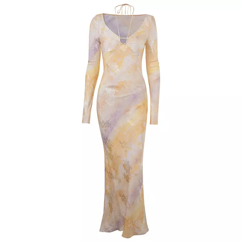 后背裸露至腰。形式多样。宜选用柔软、悬垂效果好的面料裁制。19世纪中期在欧洲贵族妇女中盛行一时,20世纪80年代再度流行。