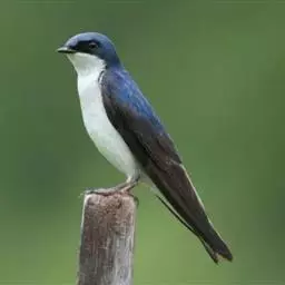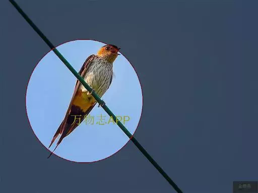 线尾燕,腹部接近纯白色,背部则为深紫色,头部的羽毛是栗色的。