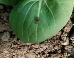 卷心菜地 【症状】:浸染叶片后刚开始为不规则形,水浸或油渍状病斑,后变为淡褐色或黑褐色。