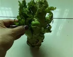 已经抽苔开花的园球型甘蓝种株,如果移至30℃以上的高温条件下,花茎顶端就不再现蕾开花,而出现绿色的叶子,这就是所谓的营养逆转现象。