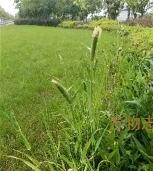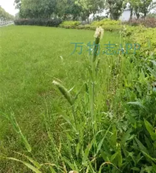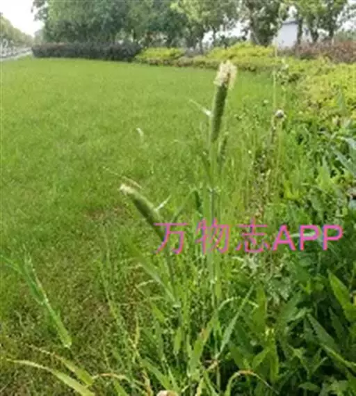 圆锥花序长圆状圆柱形,长2.5-7厘米,宽6-10毫米,灰绿色或成熟后黑色;小穗长4-5毫米,卵形;颖基部约1/4互相连合,顶端尖,稍向外张开,脊上具纤毛,两侧无毛或疏生短毛;外稃较颖短,先端钝,具微毛,芒近于光滑,约自稃体中部伸出,长1-5毫米,隐藏或稍露出颖外;雄蕊3,花药黄色,长2.5-3毫米。花果期7-9月。