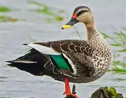 斑嘴鸭是雁形目鸭科鸭属鸟类。李文华,旭日干,中国自然资源通典 辽宁卷,内蒙古教育出版社,2015,第361页雄鸟体羽大部棕褐色;嘴蓝黑色,先端黄色,嘴基至耳区贯眼线黑褐色;虹膜黑褐色,外圈橙黄色;眉纹黄白色,头顶、额、枕部暗棕褐色;上背灰褐色,下背褐色;翼镜蓝绿色带紫色金属光泽;胸部棕白色杂褐色斑,腹褐色;腰、尾上覆羽、尾羽黑褐色,尾下覆羽黑色;跗蹠和趾棕黄色,爪黑色。雌鸟嘴端黄斑不明显,下体自胸以下淡白色,杂暗色斑。因嘴端有黄斑而得名。斑嘴鸭分布于中国各省区,栖息于河流、湖泊、水塘及沼泽等湿地中。善游泳、行走,游泳时尾露出水面,除繁殖期外,常成群活动,也和其他鸭类混群。主食植物的种子、嫩芽和幼苗等植物性食物,也食昆虫、软体动物等动物性食物。繁殖期5—7月,以干草和绒羽在岸边草丛中做巢,1年繁殖1窝,每窝产卵8—14枚,孵化期24天。斑嘴鸭被列入中国国家林业局2000年8月1日发布的《国