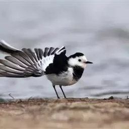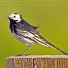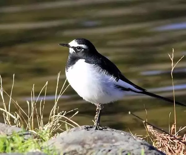 日本鹡鸰(学名:Motacilla grandis):体长约20厘米。上体多黑色,额、颏及眉纹白,下体白,两翼黑而具白色横斑及羽缘,尾黑而边缘白色。虹膜深褐色;嘴黑色;脚黑色。飞行时发出嘁喳声,具复杂而独特的鸣声。