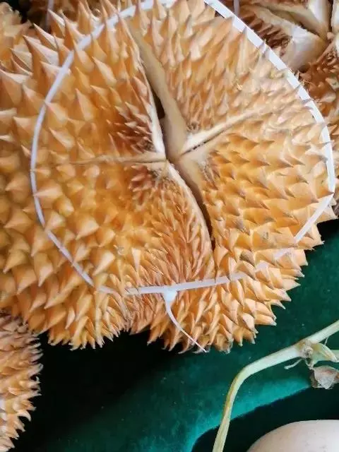 榴梿,是一种锦葵目、木棉科巨型的热带常绿乔木,叶片长圆,顶端较尖,聚伞花序,花色淡黄,果实足球大小…