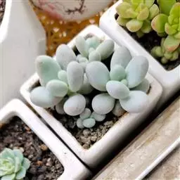 种植养护: 1.修根 景天科植物到手后,均需要修根,一般而言,须根全部除去,留下主根即可。其中石莲花是比较强健的品种,不修根也没有关系。 2.晾干 一般晾干2-5天即可种植。当然了,有经验的花友知道,最安全的办法是一直将植物放置在阴凉通风处,不需要种植,大概2-3周之后,景天植物会在空气中自然萌发出根系,这时候种植下去,成活率是接近百分之百的。期间,不用担心植物干渴而死,即使植物缩水厉害,还是可以恢复的。