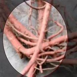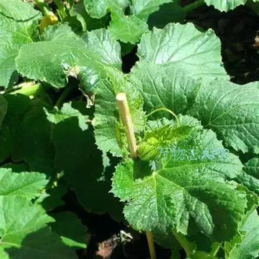 块根肉质,粗大,坚实,长圆球形,顶部不缩小,外皮及根肉均为黄棕色,下面生多数须根;基生叶及下部茎生叶长圆状卵形,长20-30厘米,有粗齿,稍具粉霜。