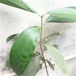 2、阴香。常绿乔木,高达20m。小枝赤褐色,无毛。叶近于对生或散生,革质,卵形或长椭圆形,长6-10cm,宽2-4cm,先端短渐尖,基部楔形至近圆形,全缘;上面绿色,有光泽,下面粉绿色,两面均无毛,具离基3出脉,脉腋内无隆起的腺体;叶柄长8-12mm。圆锥花序顶生或腋生;花小,绿白色,花被6,基部略合生,长4-5mm,两面均被柔毛;能育雄蕊9,排成3轮,外面2轮花药内向,第3轮花药外向,花药均为卵形,4室,瓣裂,花丝短,最内尚有1轮退化雄蕊;雌蕊1,子房上位,1室,1胚珠,花柱细,柱头小。浆果核果状,卵形,长不及1cm,直径约5mm,基部具肥厚杯状的宿存花被,其先端具6截形短裂片。花期3-4月。果期4-10月。