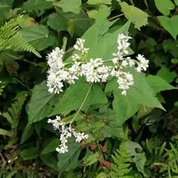 金荞麦(学名:Fagopyrum dibotrys (D. Don) Hara)是蓼科,蓼属多年生草本植物。根状茎木质化,茎直立,高可达100厘米,叶片三角形,顶端渐尖,基部近戟形,边缘全缘,托叶鞘筒状,膜质,花序伞房状,顶生或腋生;苞片卵状披针形,边缘膜质,花梗中部具关节,与苞片近等长;花白色,花被片长椭圆形,瘦果宽卵形,7-9月开花,8-10月结果。