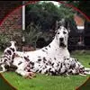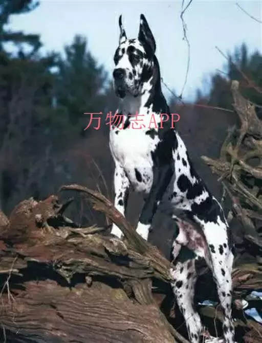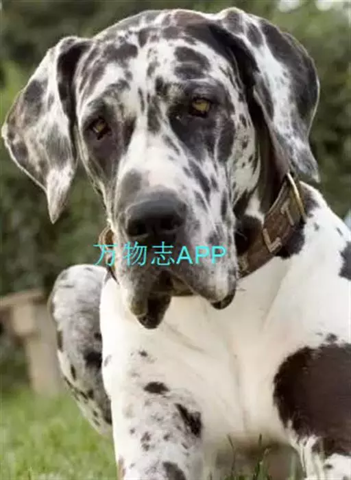 大丹犬也称做大丹狗、德国獒曾被欧洲王室及贵族饲养,是贵族身份地位的象征,体高一般为70~90公分,体重为50~70公斤。毛短厚而富有光泽,头大而窄长,毛呈黄褐、虎斑、蓝色,黑色或黑白花色等。