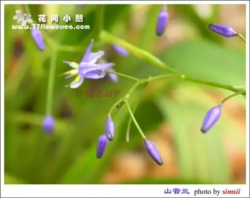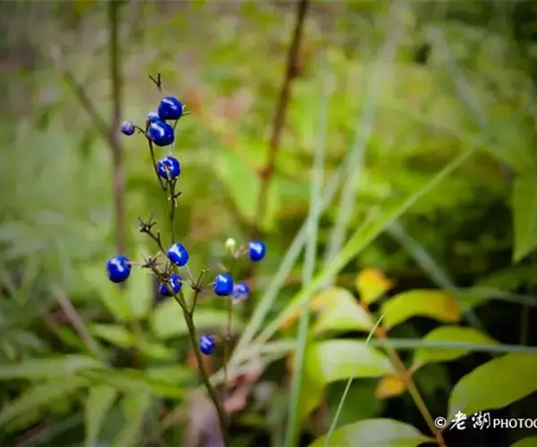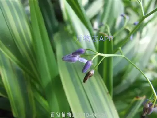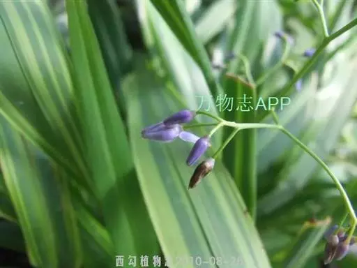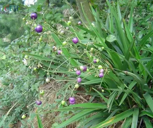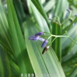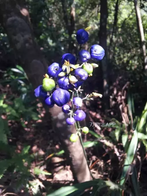 山菅兰,正名为山菅(拉丁学名:Dianella ensifolia),百合科山菅属草本植物,株高0.3-0.6米,叶线形,2列基生,革质,花序顶生,花青紫色或绿白色。浆果紫蓝色,球形,成熟时有如蓝色宝石。