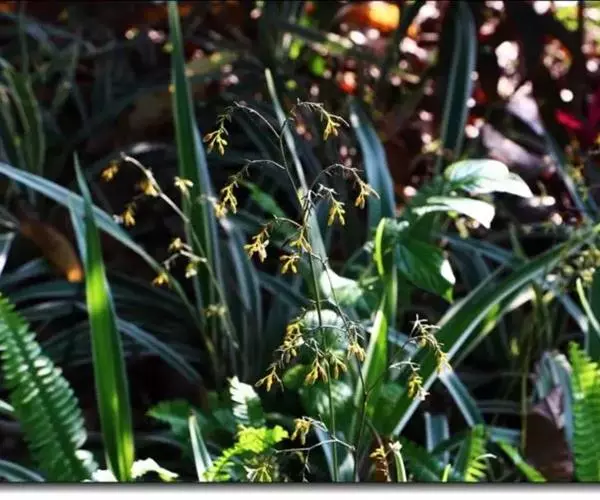 山菅兰耐阴,在半阴的地方生长良好,但对开花结果有影响,多开花而不结果。对土壤的适应性强,在贫瘠、肥沃的土壤中都能生长,极耐粗放养护管理。在浙江地区,3 月上旬可以移植幼苗,移植初期需要定期适当浇水,待幼苗定植后,一般叶片不卷曲打蔫,则无需人工浇水。移栽当年一般不能开花。其花期很长,从7 月上旬至11月均能开放。8 月为盛花期,花期过后及时除去花葶,免去不必要的营养消耗,并及时剪除带病残叶。植株较耐寒,能够常绿越冬,是冬季难得的观叶地被。第二年的早春,应当适当疏剪,除去老叶、带病叶,有利于新茎叶的萌发。一般情况下,山菅兰种植 3 年以上应进行分株,从而有利于更好的生长。山菅兰抗病虫能力强,只在高温多雨且株从过密的情况下,偶有叶斑病、炭疽病发生,可喷百菌清 800 倍液防治。虫害主要有介壳虫为害,可喷蚧杀死 800 倍液防治。