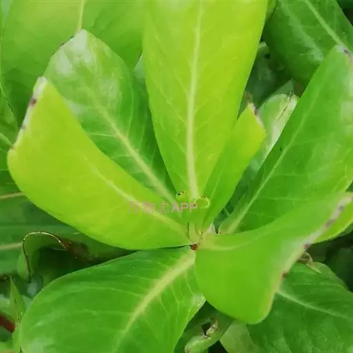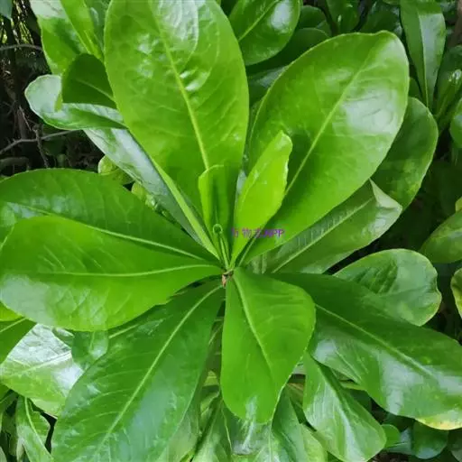 叶螺旋状排列,大部分集中于分枝顶端,颇象海桐花,无柄或具短柄,匙形至倒卵形,长10-22厘米,宽4-8厘米,基部楔形,顶端圆钝,平截或微凹,全缘,或边缘波状,无毛或背面有疏柔毛,稍稍肉质。