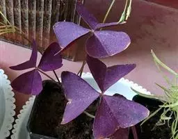 叶肉质肥厚,紫灰色,倒卵形,匙形或椭圆形,宽2.5-3.5厘米,长0.5-1.5厘米,叶尖尖锐,基部渐短粗,全缘,无毛,具白粉。