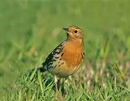 草地鹨:是雀形目鹡鸰科的鸟类,属小型鸣禽,体长约15厘米,体型较纤细。喙较细长,先端具缺刻;翅尖长,…