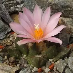 岩牡丹是仙人掌科、岩牡丹属多年生草本多浆植物。植株球形或呈扁平的莲座状,灰绿色,球体表面被白粉。…