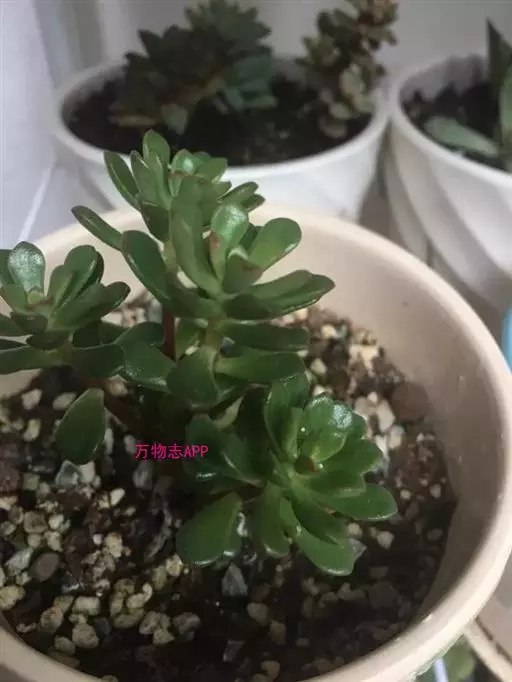 乔伊斯·塔洛克,多年生小型多肉草本植物。植株直立,易生侧芽,且侧芽多,常形成枝繁叶茂的群生株。叶子匙形,或舟形,叶面较平滑,中间略凹陷,叶背面凸起,龙骨不明显,交互对生或轮生,叶端钝,无小尖,全叶披毫毛。5-10月,一般以绿为叶的主色调,叶缘稍有红晕;11月至翌年4月,叶的基色调以红为主,在重组阳光、大温差和排水良好介质的共同影响下叶片变红。花期4-5月,聚伞花序,开花5瓣,星形,外瓣粉色,内瓣白色,花梗红色。