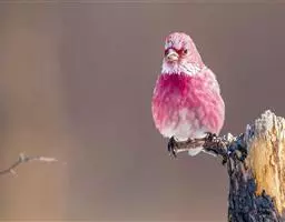 藏朱雀:全长约17-18厘米。雄鸟头部深红色具光辉,喉部暗红色具白色点斑;背部灰白色,各羽具玫瑰红…