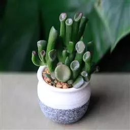 筒叶花月是以观叶为主的多肉植物,叶片翠绿,四季常青,多作办公室、居室、 阳台的摆件,也有少量用来制作多肉盆景,是一款很普及的多肉精品。