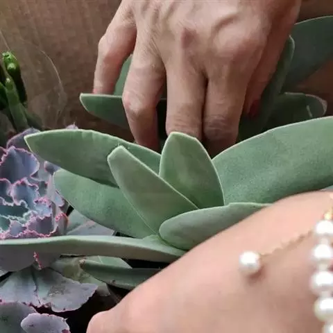 掰取植株中下部成熟健康的筒叶,基部略斜插入基质中,大部分 裸露在外面。这样光合作用面积大,有利于快速生根并能防止或减少插叶腐烂,提高成活率。叶插基质可选用沸水消毒后的粗砂。可以插在花盆的的盆边,充分利用其它花卉的叶片,来给最初的筒叶遮荫,利用“花搭光”创造一个自然的散射光环境,减少插叶的水分散失。同时,务必保持液面高出盆土表面,干燥诱导不出来根。