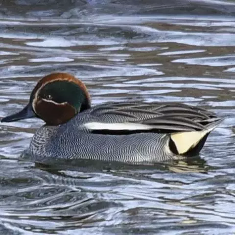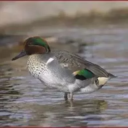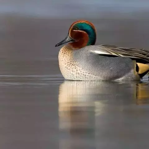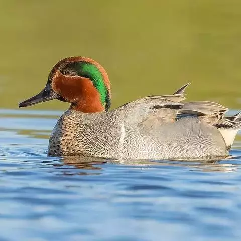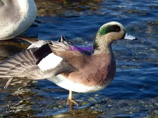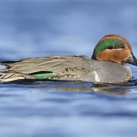 绿翅鸭是小型鸭类,体长37厘米,体重约0.5千克。嘴脚均为黑色。雄鸟头至颈部深栗色,…