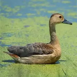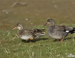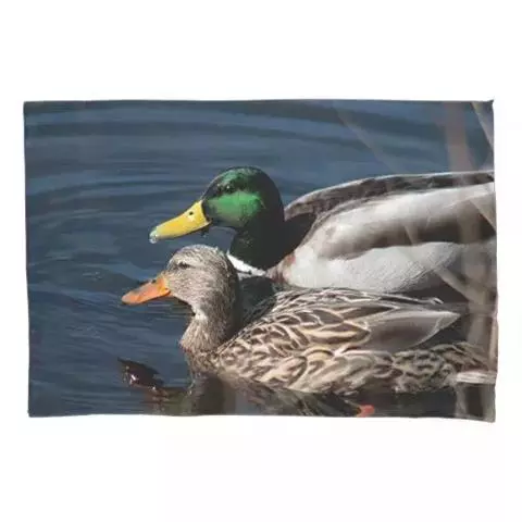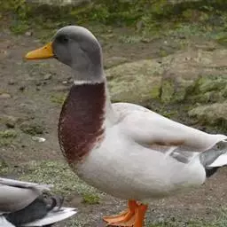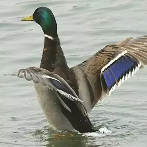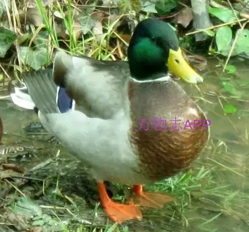 绿头鸭(学名:Anas platyrhynchos)属游禽,大型鸭类。体长47-62厘米,体重大约1千克,外形大小和家鸭相似。雄鸟嘴黄绿色,脚橙黄色,头和颈辉绿色,颈部有一明显的白色领环。上体黑褐色,腰和尾上覆羽黑色,两对中央尾羽亦为黑色,且向上卷曲成钩状;外侧尾羽白色。胸栗色。翅、两胁和腹灰白色,具紫蓝色翼镜,翼镜上下缘具宽的白边,飞行时极醒目。雌鸭嘴黑褐色,嘴端暗棕黄色,脚橙黄色和具有的紫蓝色翼镜及翼镜前后缘宽阔的白边等特征。
