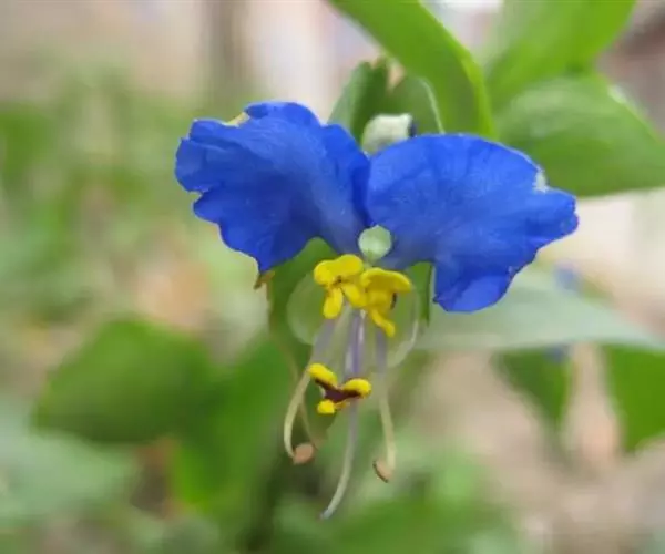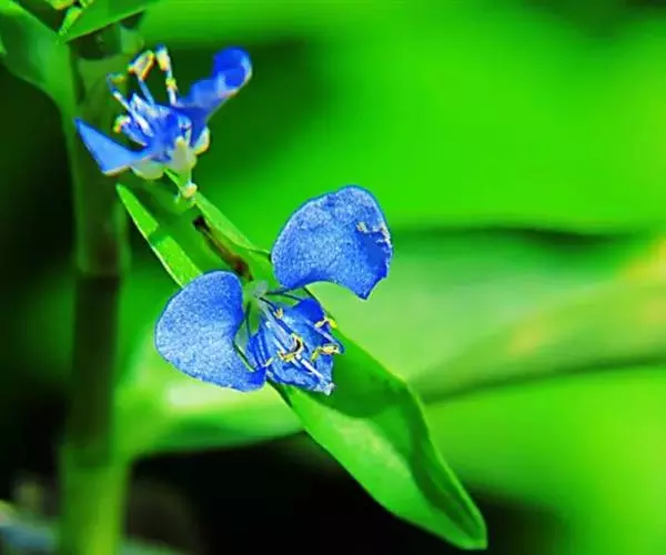 【原形态】多年生披散草本。茎柔弱,匍匐地面,节上生根,或为半攀援状。叶披针形或卵形,长3~7厘米,宽1~1.5厘米,先端短尖或渐尖,秃净或披柔毛;鞘常有红色小斑点,鞘口有睫毛。佛焰苞具柄,卵状披针形,折迭状,长1.5~2.5厘米,先端短尖或渐尖,基部浑圆或心形,秃净或被毛,有纵线条,横线条不明显,柄长1~3厘米;聚伞花序在1苞内2个,下部1个有花1~3朵,不结实,上部的有花1~2朵,结实;萼片3;花瓣3,蓝色或外面1枚淡白色;发育雄蕊3,退化雄蕊3;子房3室,其中2室含胚珠2颗,背室含胚珠1颗。蒴果。种子黑色,有网纹和深窝点。花期夏、秋。