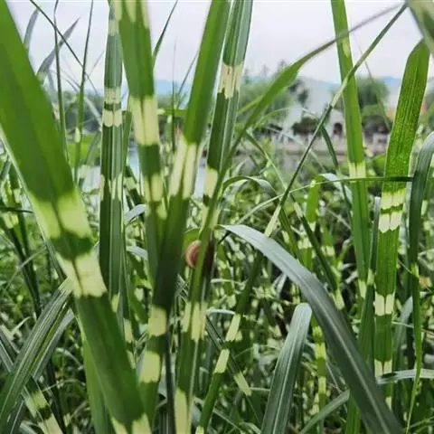 斑叶芒是禾本科、芒属多年生草本植物。丛生状,茎高可达1.7米。叶片有黄色不规则斑纹,…
