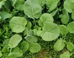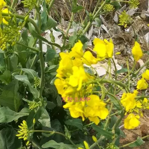 又名油菜。它的籽可以榨油。九、十月间插种,长出来的叶子形状颜色有点像白菜。