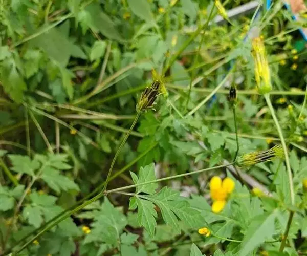 茎、叶片、叶柄、花序轴及果瓣均带紫色,基生叶大头羽状分裂,下部茎生叶三角状卵形或披针状长圆形,上部叶略抱茎。