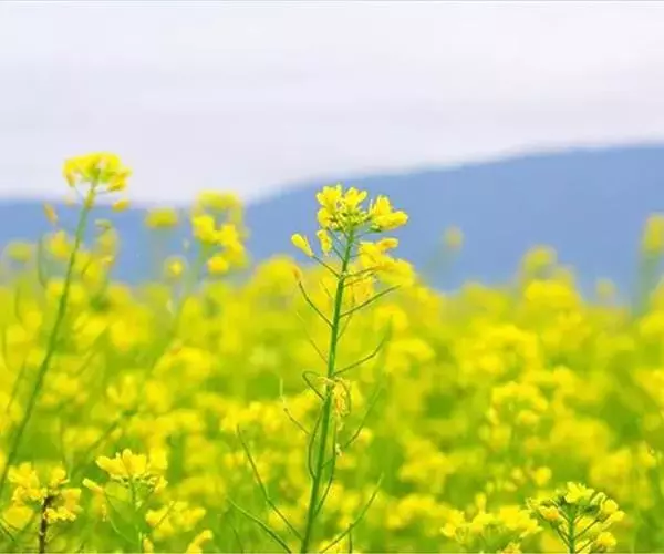 油菜开黄色的有四瓣的小花,像芥花。结荚收籽,它的籽也像芥籽,呈灰赤色。