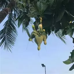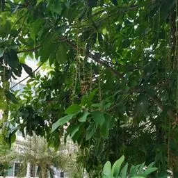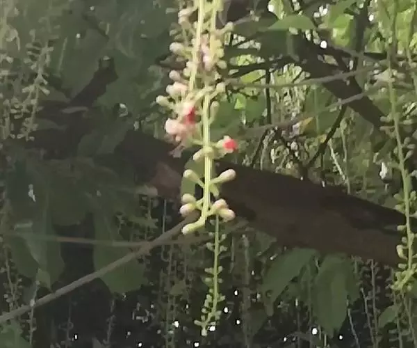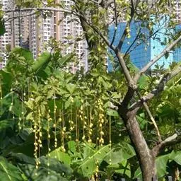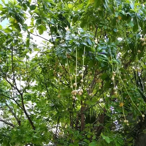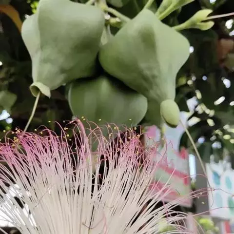 总状花序顶生,稀在老枝上侧生,下垂,长达70厘米或更长,总梗直径2-5毫米;花疏生,花梗长0.5-1.5厘米或稍过之;苞片小而早落;萼撕裂为2-4片,裂片等大或不等大,椭圆形至近圆形,长0.7-1.3厘米;花瓣4,椭圆形至卵状披针形,长1.5-2.5厘米;雄蕊通常6轮,最内轮为不育雄蕊,发育雄蕊花丝长3-4.5厘米左右;子房常3-4室,隔膜完全,胚珠每室2-3颗。果实卵圆形,长5-7厘米,直径2-4.5厘米,微具4钝棱,果皮厚3-12毫米,稍肉质,内含网状交织纤维束;种子卵形,长2-4厘米。花期几乎全年。